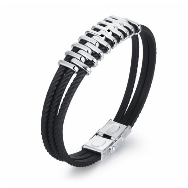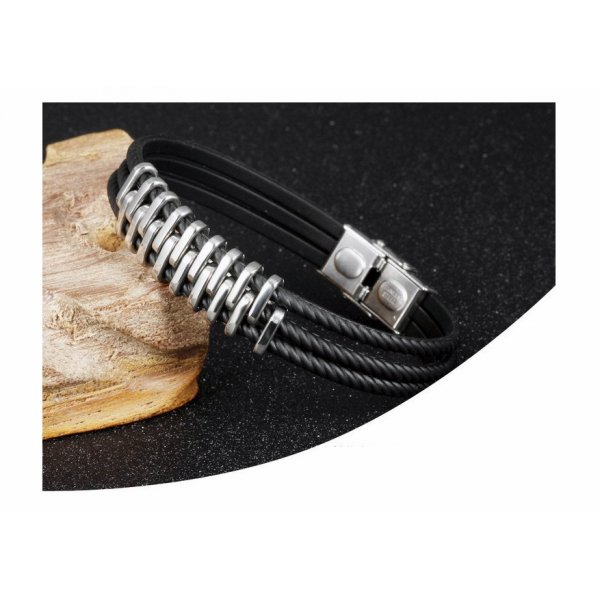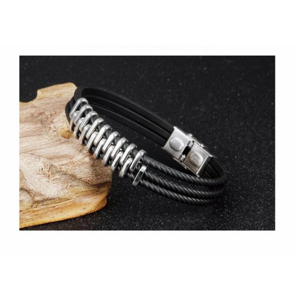 Una dintre cele mai masculine si unicate bratari ale colectiei Kelan. Contopind intr-un mod aparte elementele din otel si piele de un negru intens, aceasta bratara emana putere si caracter, iar posesorul acesteia va fi cu siguranta apreciat si complimentat in momentul in care va alege sa o poarte.