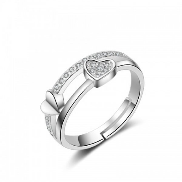 Inel Argint Logodnă cu 2 Inimi – Design Elegant și Reglabil